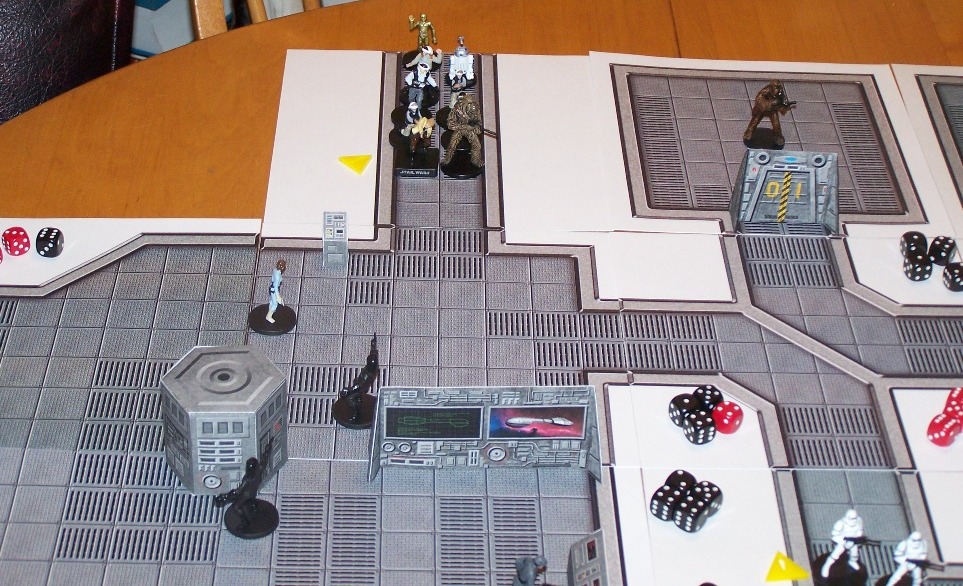 Rabid at two (randomly determined) points, on the left is Team Skywalker, working towards the engine room, on the right is Team Solo, working towards the prison cells. The Imperial patrols' direction had been randomly determined, and they were programmed to move in that direction until an alert had been given.