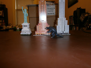 I previewed one piece of this in last week's post, so today I have some more of my Manhattan Island project for giant monster gaming with Mighty Monsters and 3" gashapon figures. I've picked most of these up in the last few months, the Manhattan-specific stuff from eBay and the other landmarks at a dollar store in the toy section.